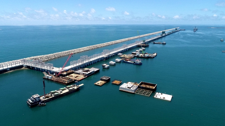 ▲茂名港務(wù)中心項(xiàng)目 在這乘風(fēng)破浪、跨越發(fā)展的十年里,茂名港深水大港崢嶸初現(xiàn),碩果累累——實(shí)現(xiàn)資產(chǎn)規(guī)模和融資規(guī)!半p百”目標(biāo),為濱海新區(qū)基礎(chǔ)設(shè)施建設(shè)和茂名港集團(tuán)發(fā)展提供資金保障,融資平臺(tái)作用凸顯;自建、參建省市重點(diǎn)項(xiàng)目超30個(gè),推動(dòng)博賀新港區(qū)東西防波堤、10萬噸級(jí)成品油碼頭、東區(qū)化工碼頭、東區(qū)化工倉儲(chǔ)、粵西LNG造陸項(xiàng)目、茂名港務(wù)中心、博賀灣大橋、供水工程等一批省市重點(diǎn)項(xiàng)目建設(shè)投用,充分發(fā)揮濱海新區(qū)項(xiàng)目建設(shè)主體作用,加快推進(jìn)口岸開放工作,為茂名經(jīng)濟(jì)實(shí)現(xiàn)高質(zhì)量發(fā)展增添動(dòng)力。 前瞻布局,打造南海能源新通道,積極融入茂名“向海而興”發(fā)展大局。
