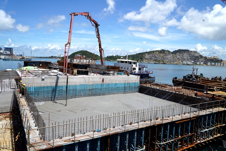 ▲東區(qū)化工碼頭項(xiàng)目胸墻澆筑作業(yè) 集團(tuán)當(dāng)前在建的10萬噸級(jí)成品油碼頭、東區(qū)化工碼頭等碼頭泊位建設(shè)進(jìn)入沖刺階段,認(rèn)真貫徹市委市政府關(guān)于加快口岸開放工作的要求,計(jì)劃今年竣工驗(yàn)收;茂名港務(wù)中心已完成主體結(jié)構(gòu)施工,計(jì)劃今年建成投用,將為濱海新區(qū)樹立嶄新地標(biāo);30萬噸級(jí)原油碼頭報(bào)批報(bào)建工作取得重大突破,項(xiàng)目岸線申請(qǐng)獲得國家交通運(yùn)輸部批復(fù),前期工作不斷加快推進(jìn),即將進(jìn)入實(shí)質(zhì)性實(shí)施階段,現(xiàn)代化深水大港的畫卷徐徐展開。 挖潛增效,劃轉(zhuǎn)老國企扭虧為盈,實(shí)現(xiàn)國有資產(chǎn)保值增值。