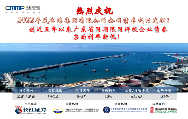 喜訊!省內(nèi)票面利率最低!茂名港集團(tuán)成功發(fā)行5.9億元公司債券