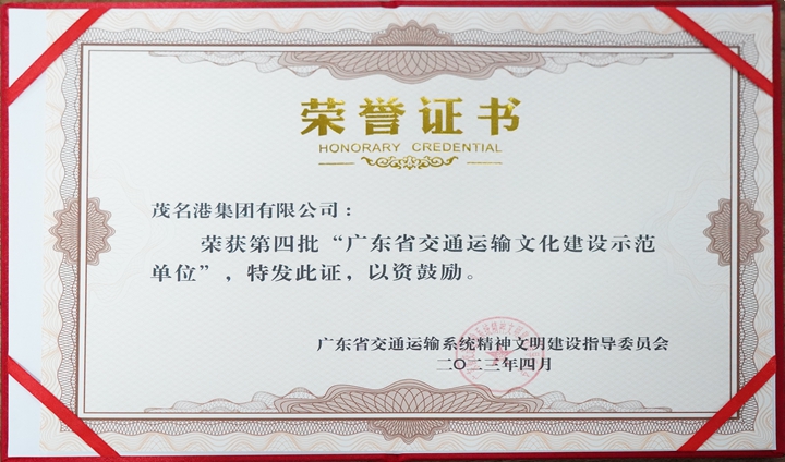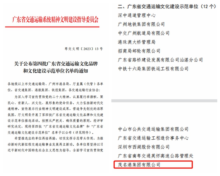喜報(bào)!茂名港集團(tuán)被評(píng)為第四批“廣東省交通運(yùn)輸文化建設(shè)示范單位”