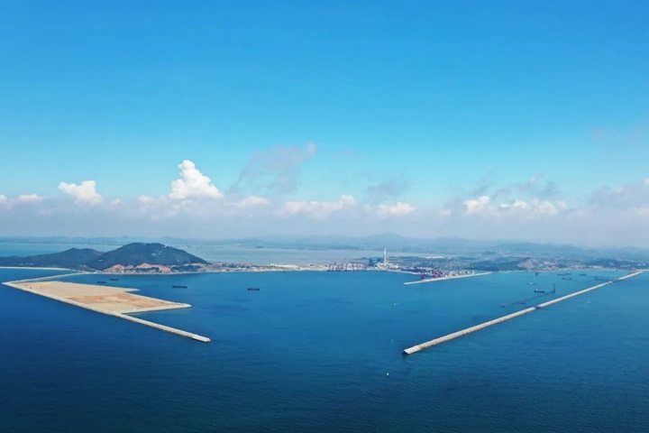 從灘涂到深水港,從藍(lán)圖到實景圖。路選對了,就不怕遙遠(yuǎn)。 2013年,隨著東閣嶺第一炮的炸響,東西兩條防波堤像巨臂一樣向海中延伸,圈出了茂名港人億噸大港的夢想。這一路,從零到有,從卡脖子到攻堅突圍,再到不斷刷新成績,一路艱難險阻,卻又步履堅定! 挺難的,從一無所有中起步,大家都是咬著牙砥礪向前的!绷鹤驷摶貞泟?cè)肼殨r在港區(qū)看到的畫面,退潮時都是灘涂爛泥,漲潮時便是一片淺海,要把漁民拉上腰的護(hù)服穿在身上才港下地勘測,以免一漲潮就成了“落湯雞”。在防波堤項目建設(shè)的過程中,梁祖釗發(fā)現(xiàn)港區(qū)起步施工基礎(chǔ)差,東閣嶺開山爆破難度大、所需拋石量巨大、工期緊實施人員少等種種困難,基本沒有可參考借鑒的港口建設(shè)管理經(jīng)驗。實施人員少,那就一崗多責(zé),一個人分擔(dān)多個角色輪回轉(zhuǎn)軸;沒經(jīng)驗,那就摸著石頭過河,參考國家港口工程建設(shè)管理規(guī)定,一項一項按照最高要求制定施工計劃,系統(tǒng)部署、優(yōu)化調(diào)度東西防波堤各種有利資源,最大限度增加?xùn)|西防波堤的作業(yè)面和水拋力度,使防波堤日均水拋量從8000立方米提升至16000立方米,大大加快了施工進(jìn)展。他深耕項目建設(shè)一線,在集團(tuán)黨委的帶領(lǐng)下全過程參與完成項目設(shè)計方案審核、招投標(biāo)、合同談判、施工建設(shè)、交工驗收等工作。終于,在2018年7月,外圍全長5423米東防波堤和全長3315米的西防波堤順利交工驗收,兩堤如同巨臂環(huán)繞形成環(huán)抱式港池面積6平方公里,為茂名實現(xiàn)“億噸大港夢”奠定了堅實的基礎(chǔ),有力地助推茂名經(jīng)濟(jì)高質(zhì)量發(fā)展。